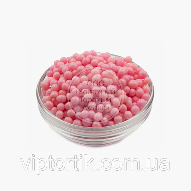 ОПИС: декоративна посипка — кульки діаметром 2-3 мм, повітряний рис глазурований білим шоколадом, у хрусткій цукровій оболонці з глянсовою поверхнею. Використовуються для декорування та прикрашання тортів, тістечок, десертів, морозива та ін.